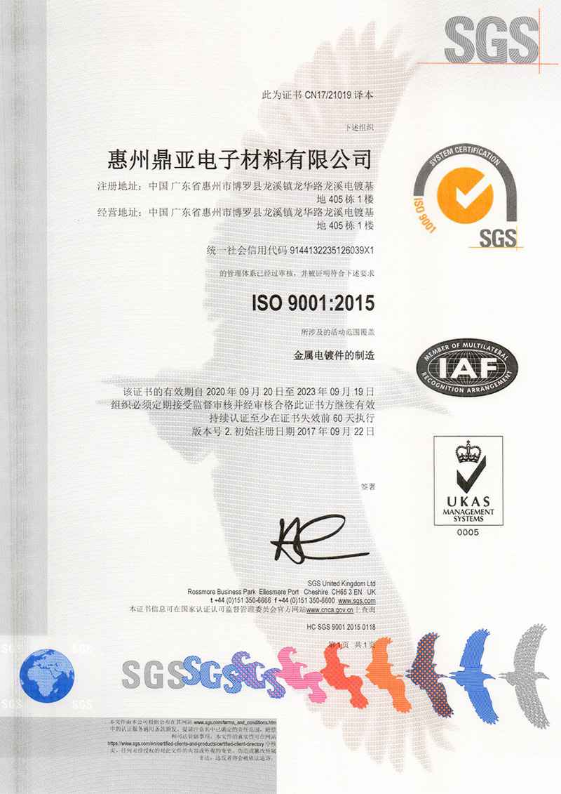 惠州IATF 16949:2016认证证书